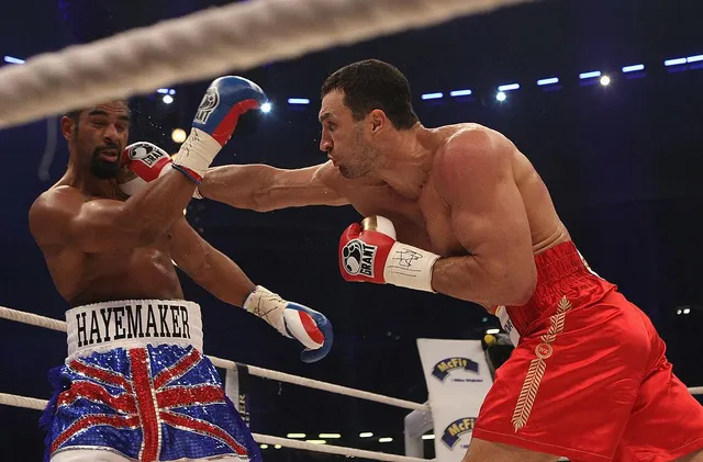 Тоді Володимир вийшов на ринг проти Девіда Хея з трьома чемпіонськими поясами. Бій з британцем тривав усі 12 раундів. У рингу українець викинув всього 509 ударів, з яких 134 влучили у ціль.