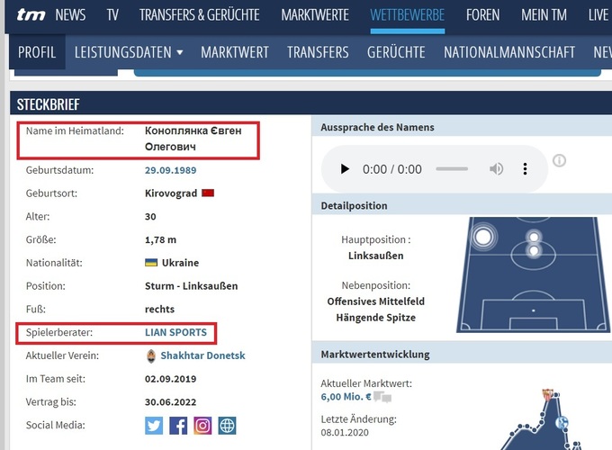 Зазначимо, що агент Фалі Рамадану пов'язаний з компанією Lian Sports, клієнтом якої є українець Євген Коноплянка, про що повідомлялося ще на початку минулого року. Крім того, інформація про співробітництво хавбека "Шахтаря" із зазначеним агенством є на сайті Transfermarkt.de, який є досить авторитетним джерелом у цій сфері футбольної діяльності.