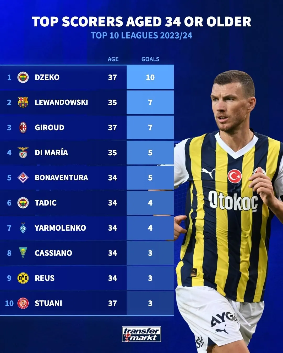 Топ-10 бомбардирів віком 34+ / instagram.com/transfermarkt_officialс