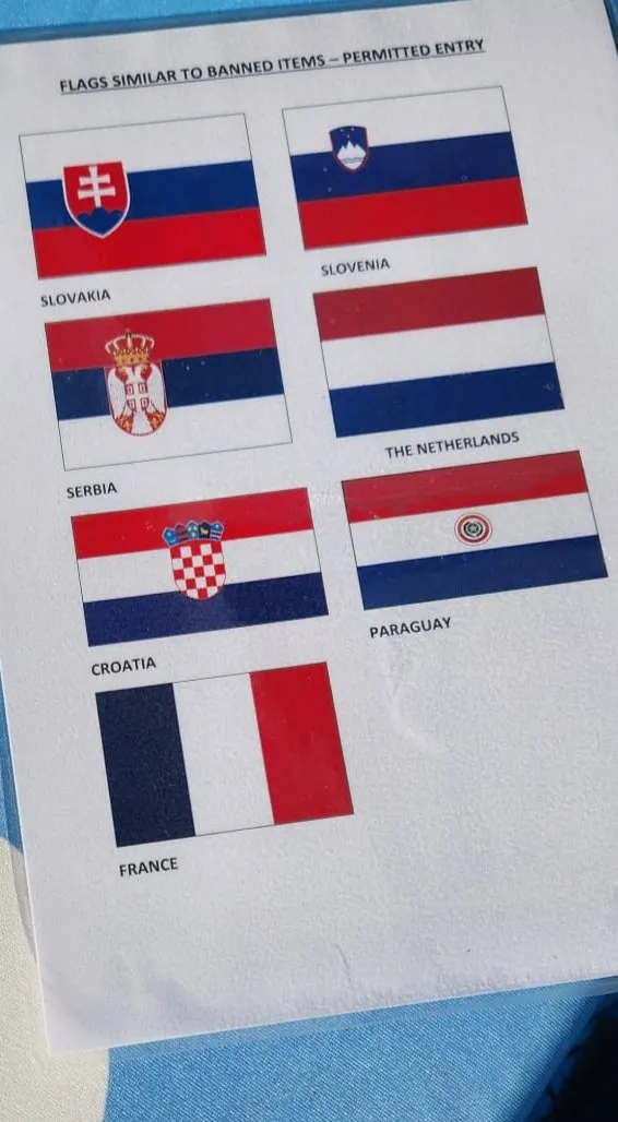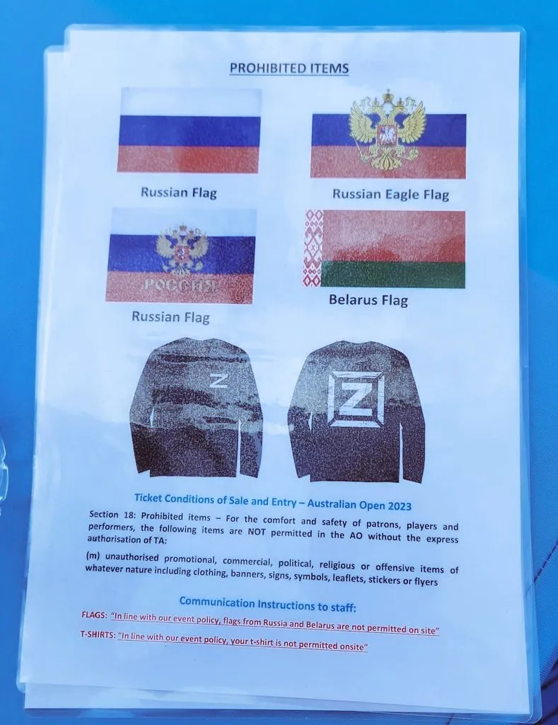Щоб охоронці на Australian Open не переплутали, де саме заборонений російський прапор, а де дозволені прапори, їм роздали відповідні зображення.