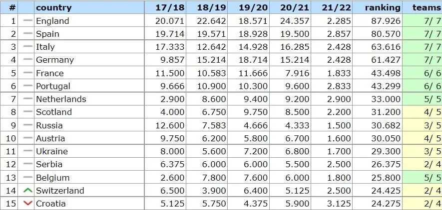 Таблиця коефіцієнтів УЄФА / Скриншот із kassiesa.net