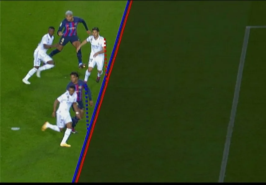 Дані прострілив у центр, де першим до снаряда дістався Марко Асенсіо, який вийшов на заміну. Втім це взяття воріт після перегляду VAR скасували, адже іспанець зовсім трохи заліз в офсайд під час пасу.
