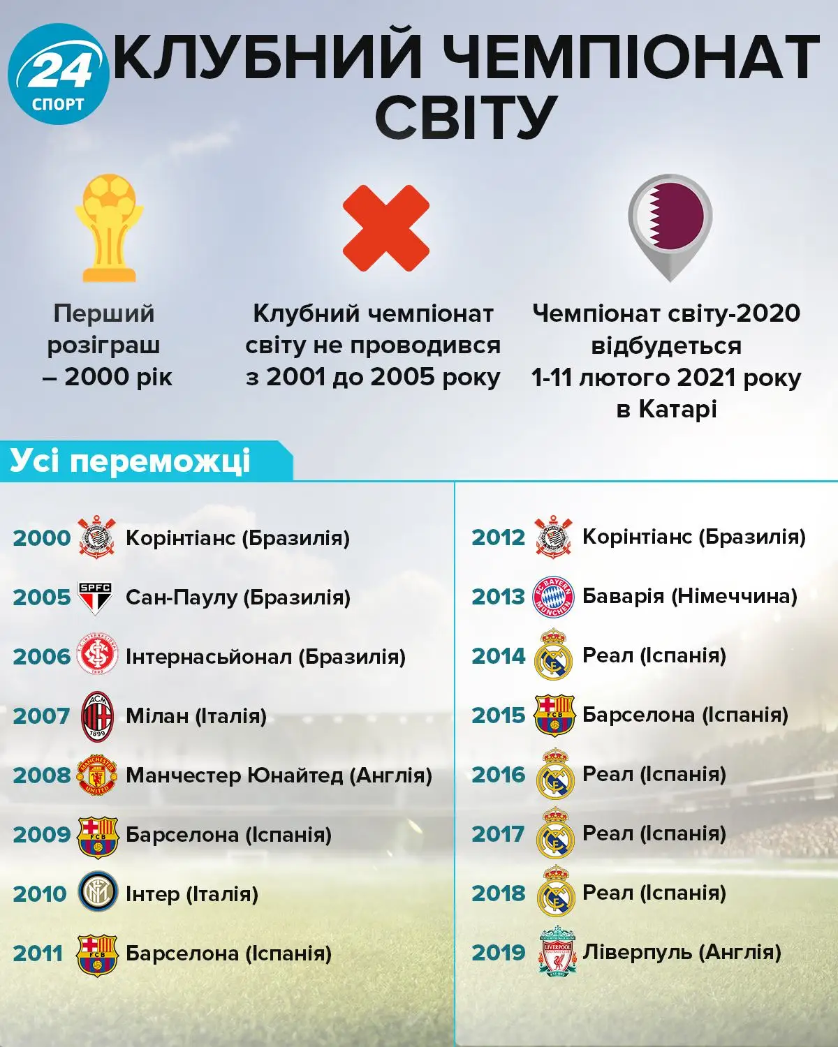 В Україні вирішальний матч клубного чемпіонату світу покаже у прямому ефірі "UA: Перший". Трансляція буде доступна за 10 хвилин до початку поєдинку. Також можна стежити за протистоянням у мобільному додатку suspilne.tv.