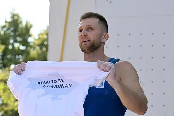 Український скелелаз витягнув білу футболку з картою України, а посередині був напис англійською "Proud to be Ukrainian" (у перекладі на українську – "Гордий бути українцем"). Цей момент зірвав овації місцевих.