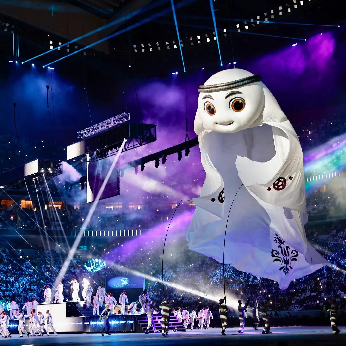 Ще одною запрошеною зіркою став співак Чонгук з відомого гурту BTS. Завершилась церемонія феєрверком та парадом талісманів минулих чемпіонатів світу, а також появою великого килимка Лаїба, який є маскотом цього турніру.