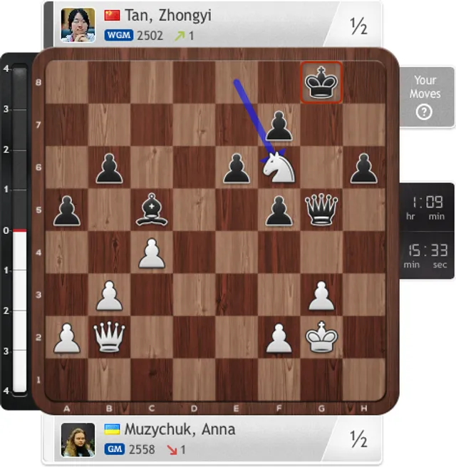 Музичук грала білими і на певному етапі потрапила в цейтнот, через що так і не змогла реалізувати свою перевагу.