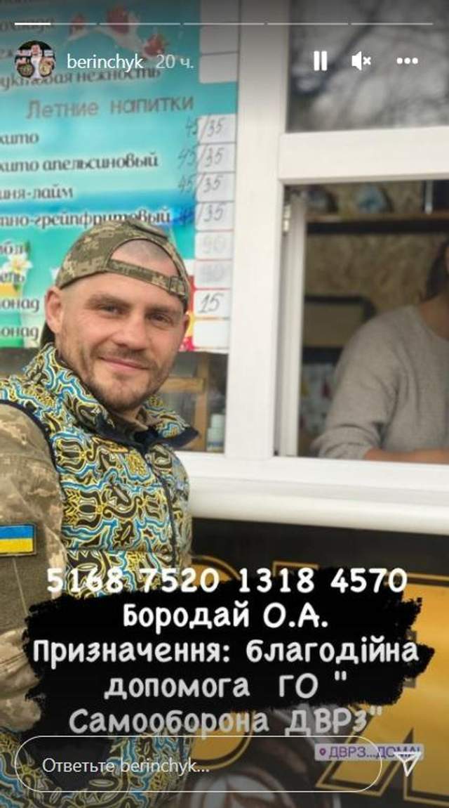 Берінчик захищатиме свій мікрорайон ДВРЗ від російських окупантів. У своєму інстаграмі він опублікував відео, де сидить на кухні та чистить автомат.