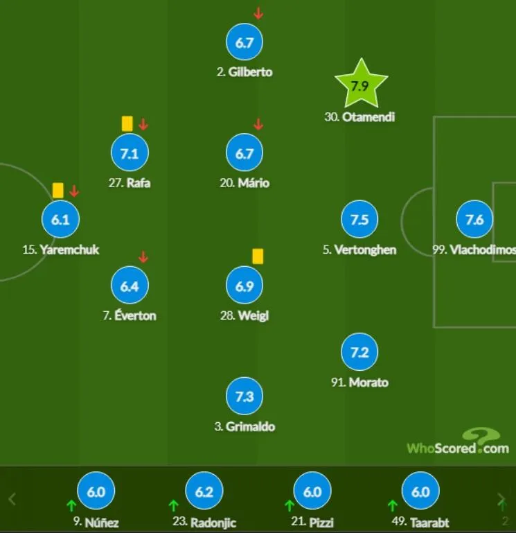 Після гри аналітики WhoScored поставили українцеві найнижчу оцінку серед гравців стартового складу Бенфіки – 6,1 з 10 можливих.