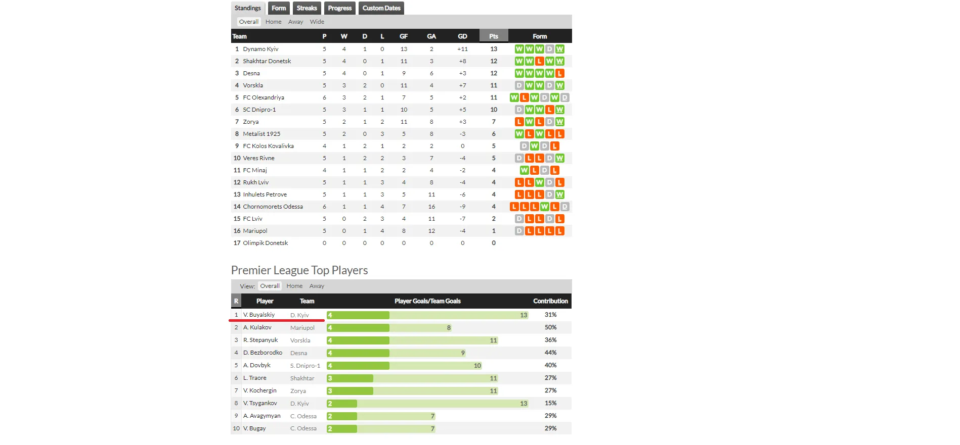 Вплив Буяльського на результативність Динамо / Скриншот Sofascore