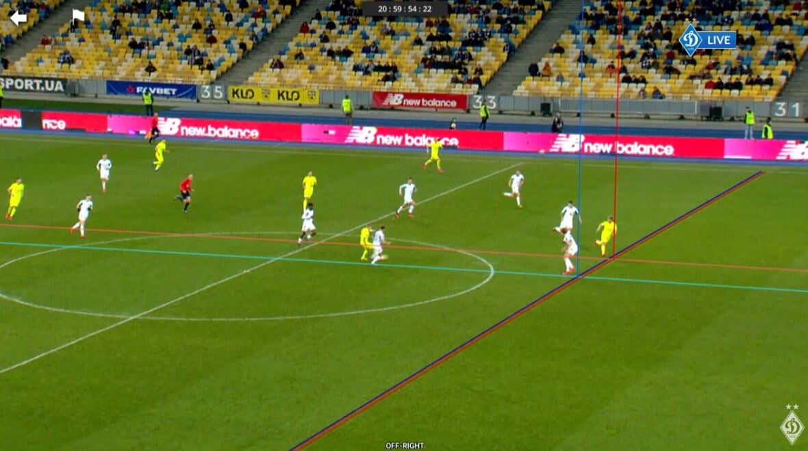 Наприкінці першого тайму "Динамо" відкрило рахунок у матчі. Фран Соль забиває гол після удару Де Пени в штангу і відскоку м'яча в поле. Динамічний момент, арбітр радився з VAR, але взяття воріт все ж зараховано – 1:0.