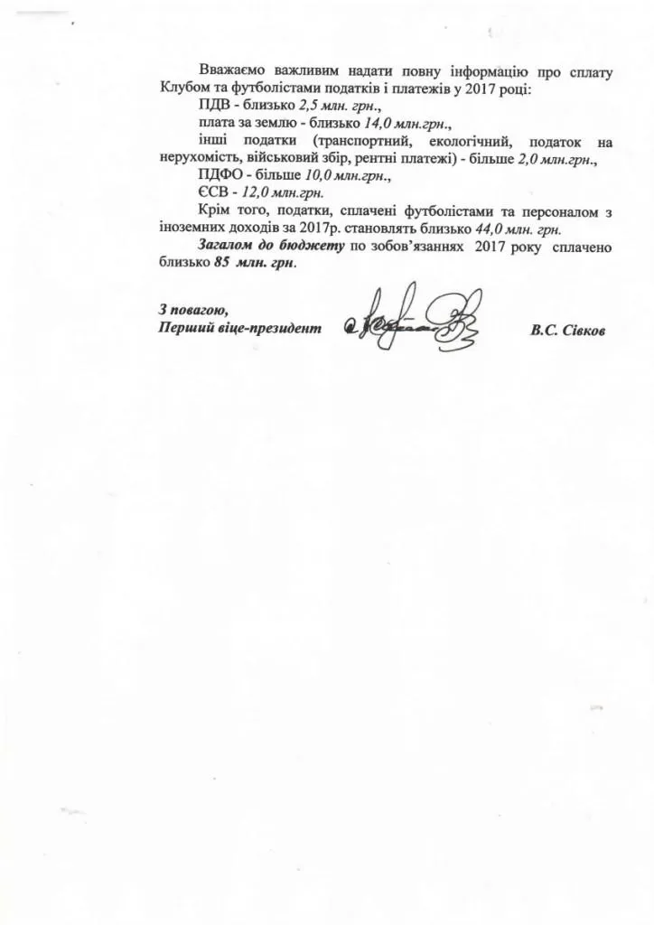 Зокрема, близько 44 млн грн становлять податки, сплачені футболістами та персоналом "з іноземних доходів".