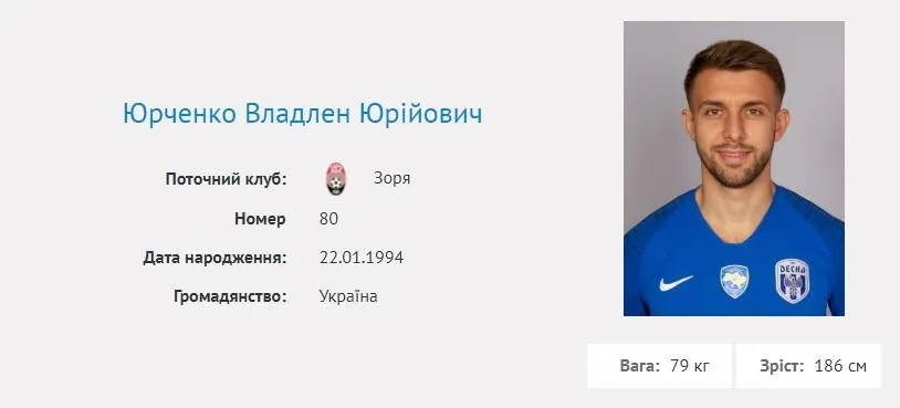 Профіль Владлена Юрченка / Скриншот із сайту УПЛ
