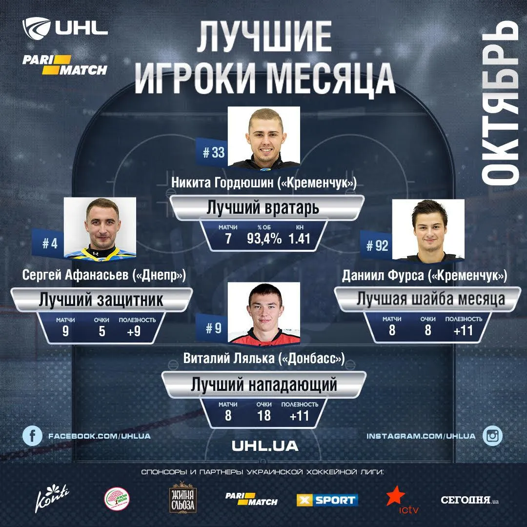 Кращим нападником місяця був визнаний гравець "Донбасу" Віталій Лялька. 7 з 8 матчів донеччан стали результативними для форварда – в них він набрав 18 (5+13) очок при показнику корисності +11. Відзначимо, що в 4 матчах поспіль Лялька набирав мінімум 3 очки.