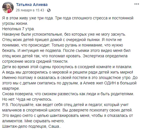 Крім того, за словами жінки, вона та її діти регулярно знаходяться в стані стресу. Чоловік шантажує її, вимагаючи відмовитися від аліментів. А після відео злісно б'є дружину.