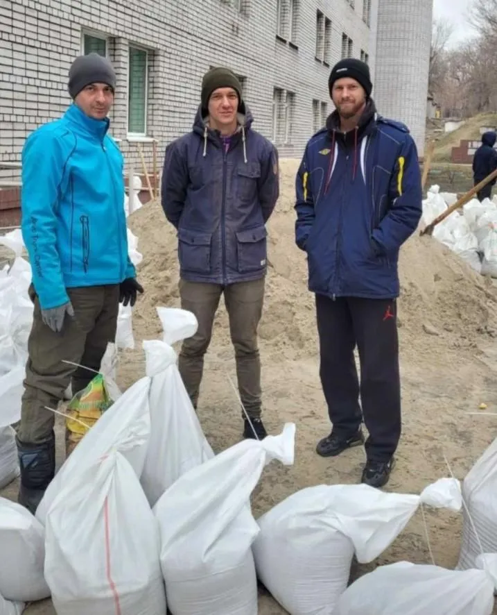 Футболіст Вереса розповів, що не може і не хоче сидіти без діла у чотирьох стінах, тому вирішив зайнятись корисною справою. Полюлях носить мішки з піском до блокпоста у місті.