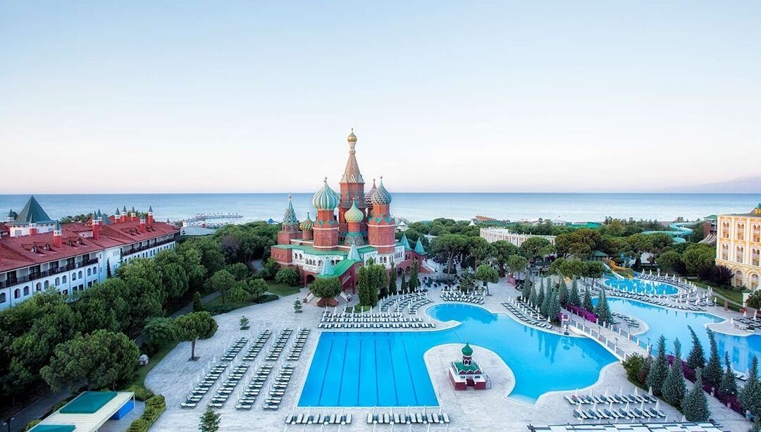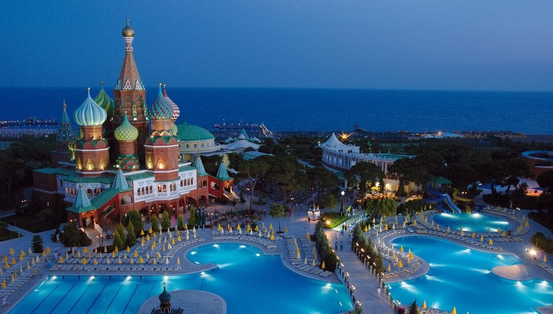 Він знаходиться в 13 кілометрах від аеропорту Анталії, а його територія виконана в стилі московського Кремля.