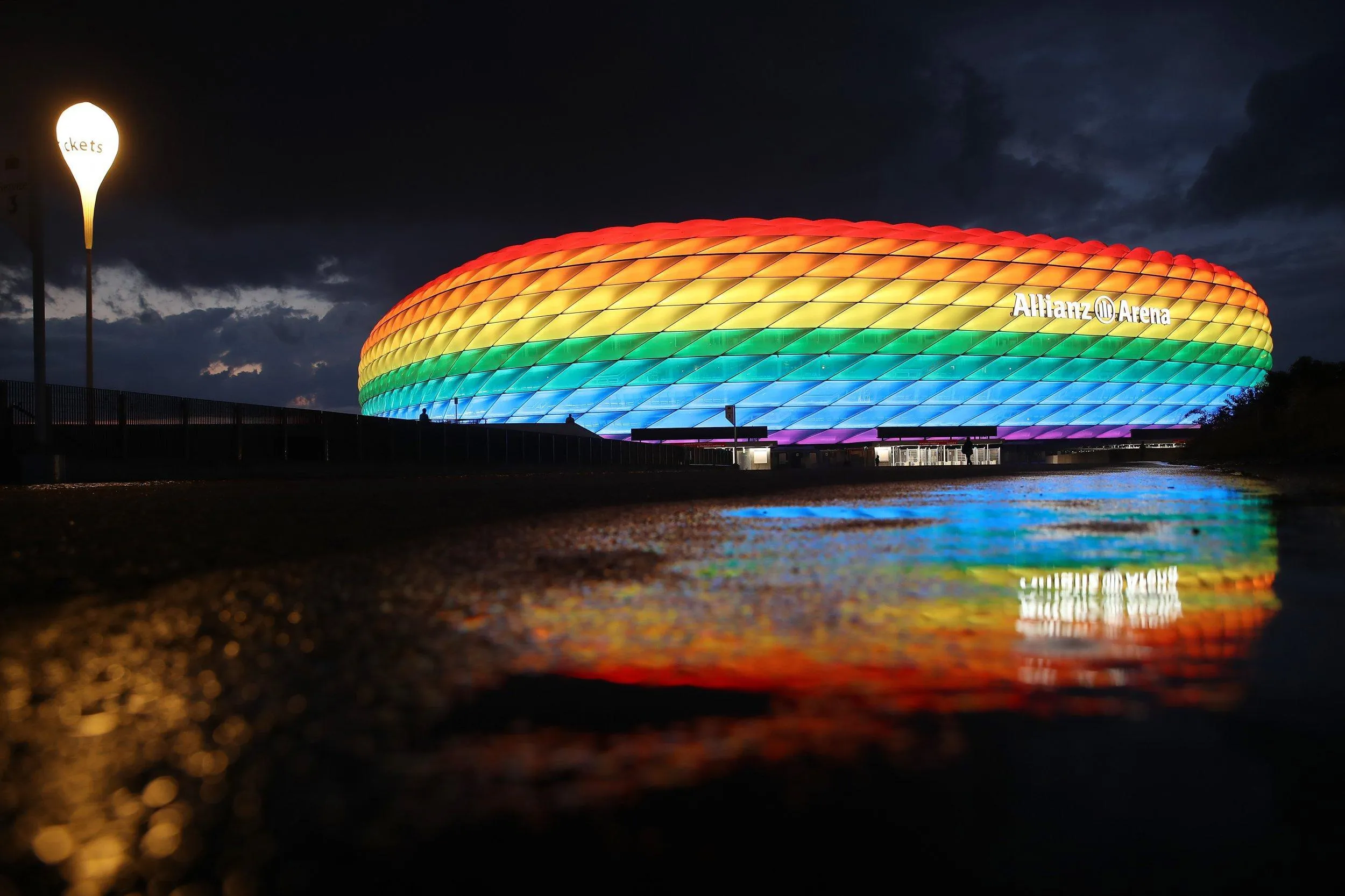 УЄФА не дозволила таку підсвітку стадіону, чим обурила німців. Мер Мюнхена вирішив розвісити по місту ЛГБТ-прапори, а деякі німецькі стадіони в день гри вирішили таки підсвітити кольорами веселки.