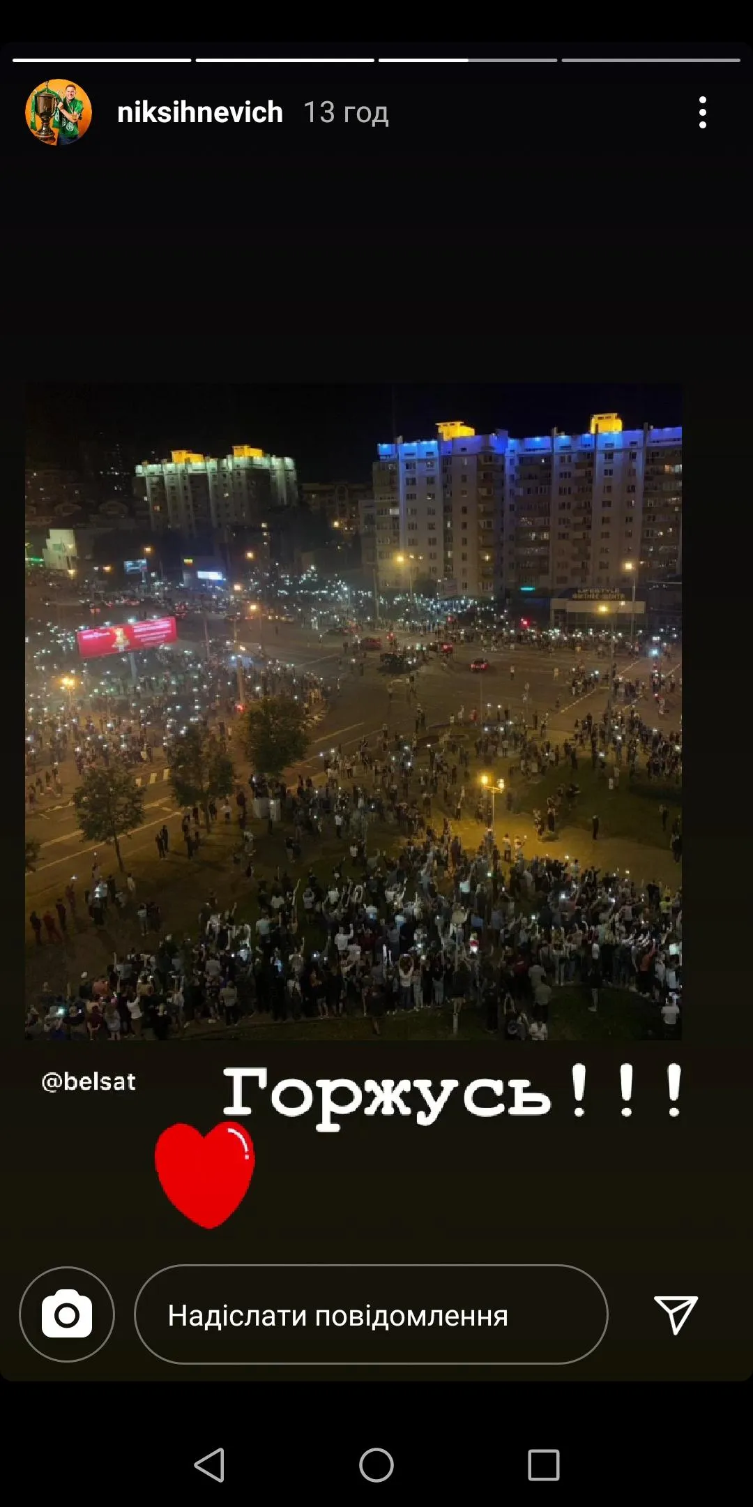 Перший пост – фото з протестів у Мінську, де люди почали збиратися на площі після оголошення попередніх результатів президентських виборів. До цього фото він додав підпис "Пишаюся".