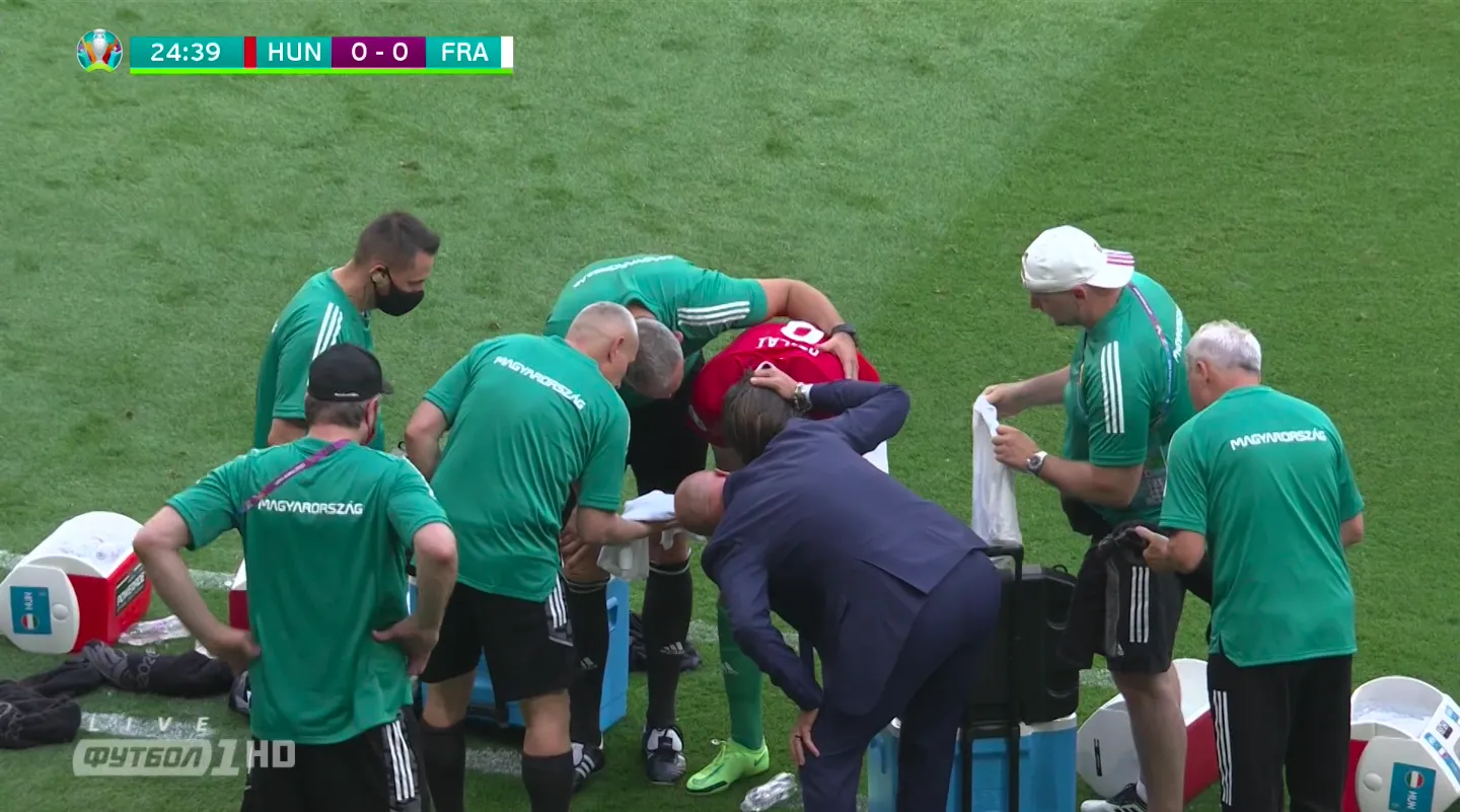 Угорщина та Франція зустрілися у Будапешті за 30-градусної спеки. Адам Салай пішов з поля на 26 хвилині гри, коли рефері оголосив невелику перерву, щоб попити води.