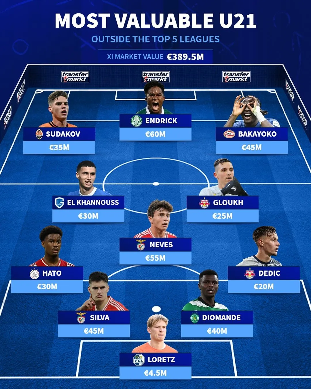 Цікаво, що найдорожчим молодим гравцем світу є форвард бразильського Палмейраса Ендрік. Трансферна вартість 17-річного вундеркінда становить 60 мільйонів євро. 21 липня 2024 року, коли Ендріку виповниться 18 років, форвард приєднається до мадридського Реала.