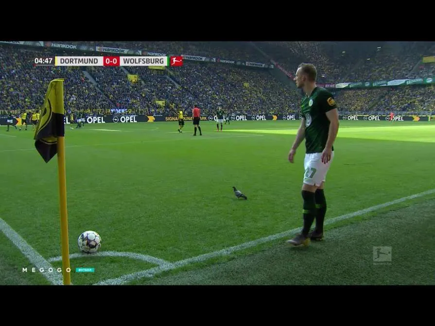 На 5-й хвилині зустрічі хавбек гостей Максиміліан Арнольд пішов подавати кутовий, але біля прапорця сидів голуб. Півзахисник акуратно обійшов його, але птах не злякалася. Голуб ходив по полю під час гри півтайму.