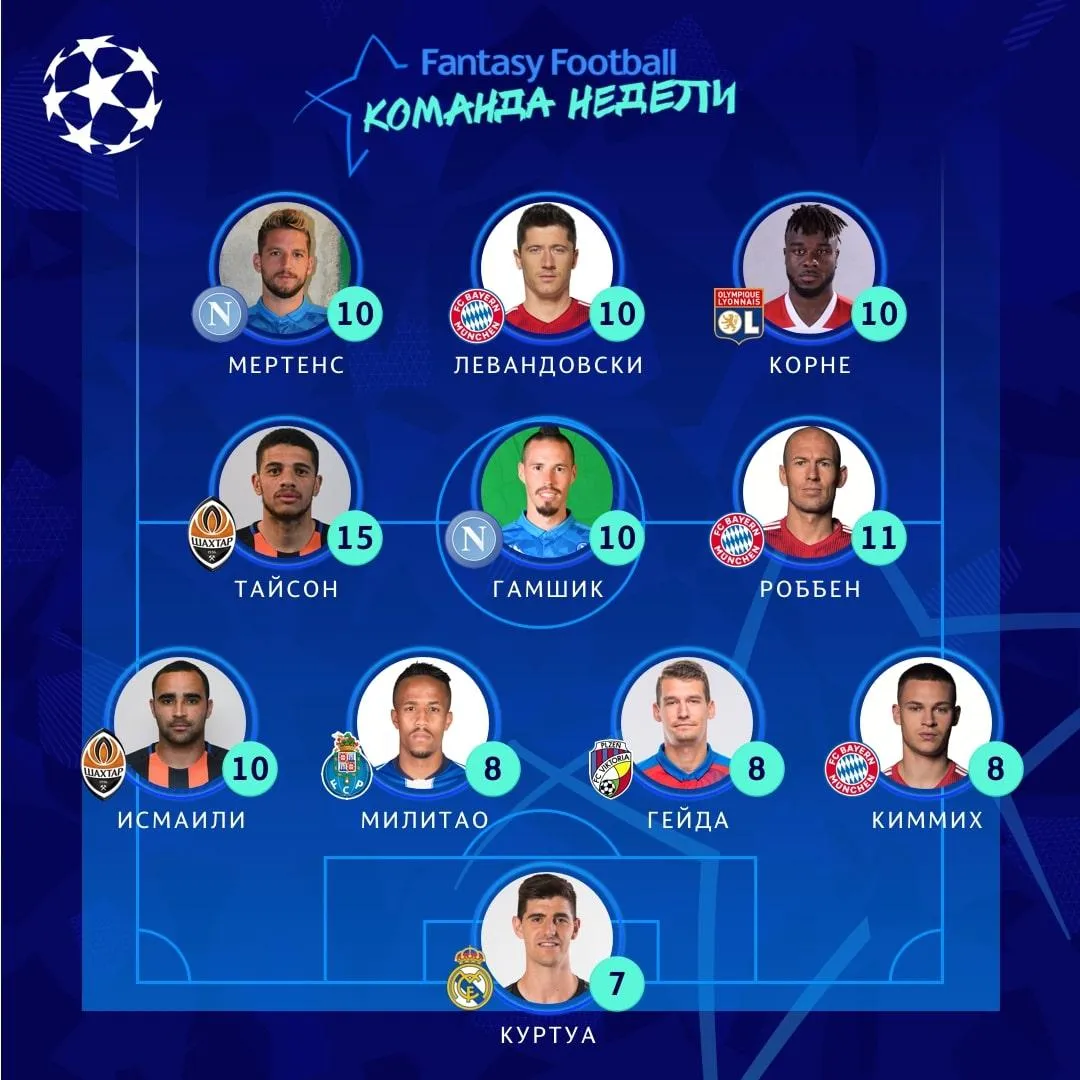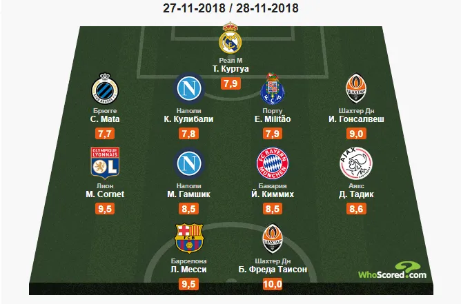 Окрім донеччан, до символічної команди потрапили Тібо Куртуа ("Реал"), Лукаш Гейд ("Вікторія"), Джошуа Кімміх ("Баварія"), Едер Мілітао ("Порту"), Марек Гамшик ("Наполі"), Ар'єн Роббен ("Баварія"), Максвелл Корне ("Ліон"), Дріс Мертенс ("Наполі") та Роберт Левандовські ("Баварія").
