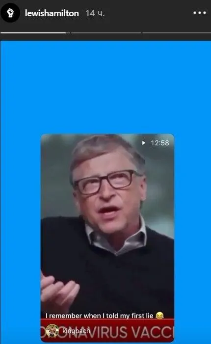 Хемілтон опублікував у сторіс в Instagram фрагмент розмови Білла Гейтса, в якому він говорить про вакцинацію. І заперечує той факт, що вакцина, яка розробляється за його підтримки, буде використана для чипізації людей.
