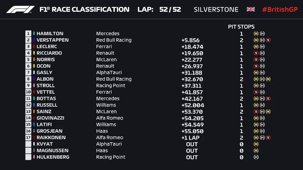 Результати гран-прі Великої Британії / ілюстрація twitter.com/F1