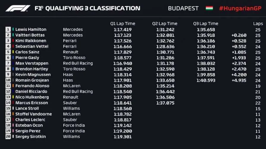 Стартова решітка гран-прі Угорщини 2018 року