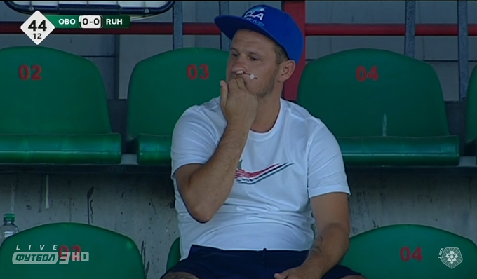 Камери трансляції матчу показали колишнього гравця "Динамо", судячи з усього, з сильним розсіченням обличчя. Cам ексфутболіст вже прокоментував цей інцидент у Instagram.