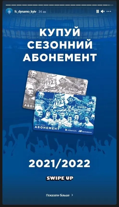Правда після цього на сторінках Динамо було замінено фон в повідомленні про абонементи. Там тепер лише контур НСК "Олімпійський" та вболівальників.