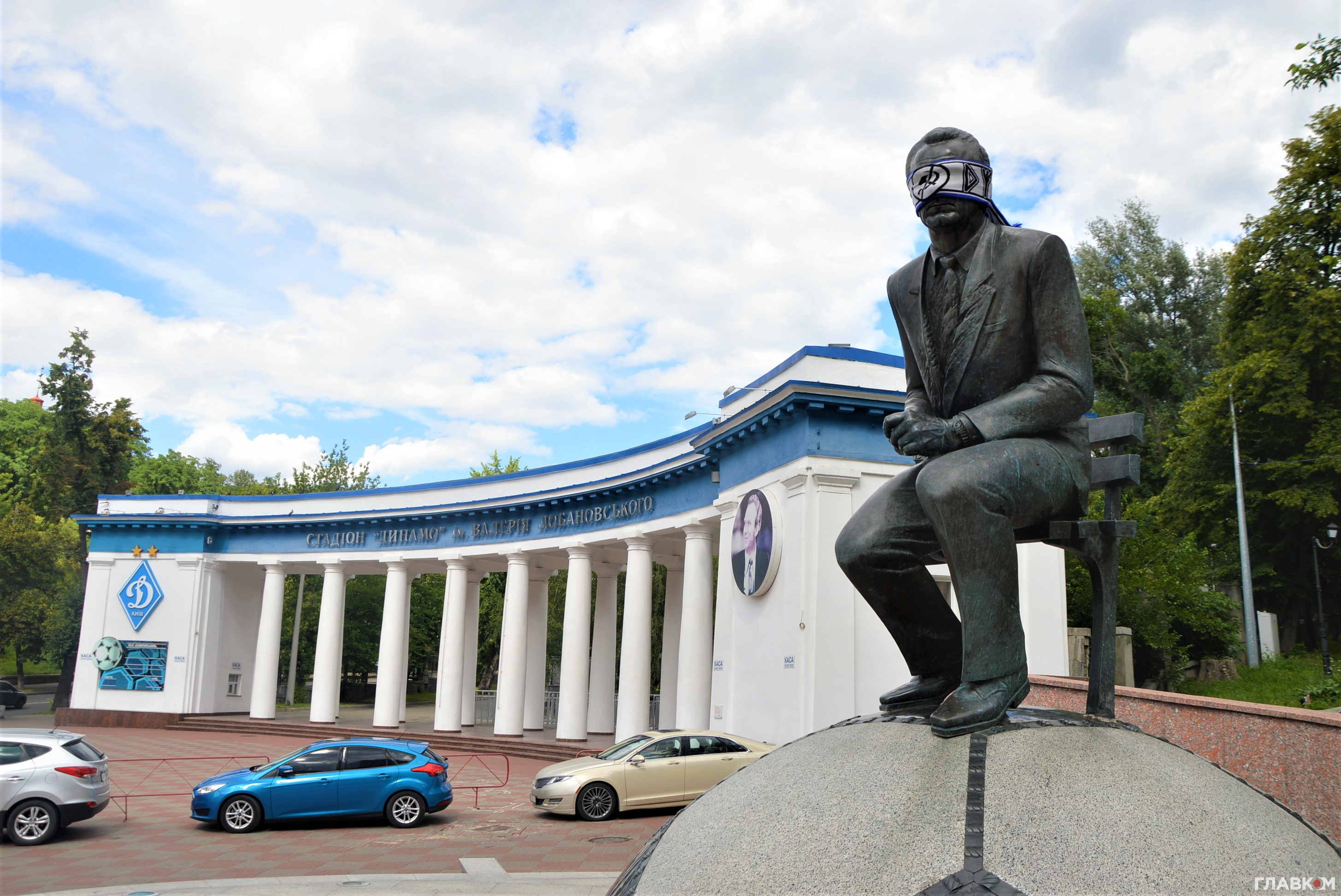 Фанати зав'язали очі пам'ятнику Валерію Лобановському / Фото: "Главком"