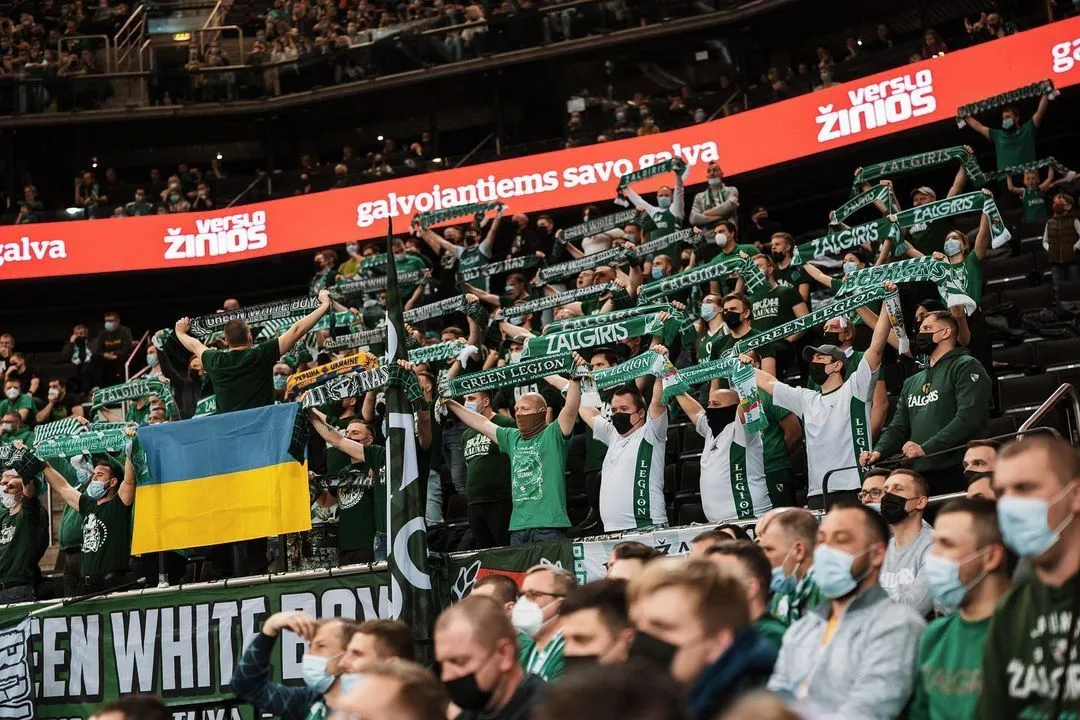 Вболівальники також солідарні з українцями. На трибунах було помітно багато українських прапорів та плакатів на підтримку України. Шанувальники литовського клубу вказували російському кораблю, куди йому слід рухатися.