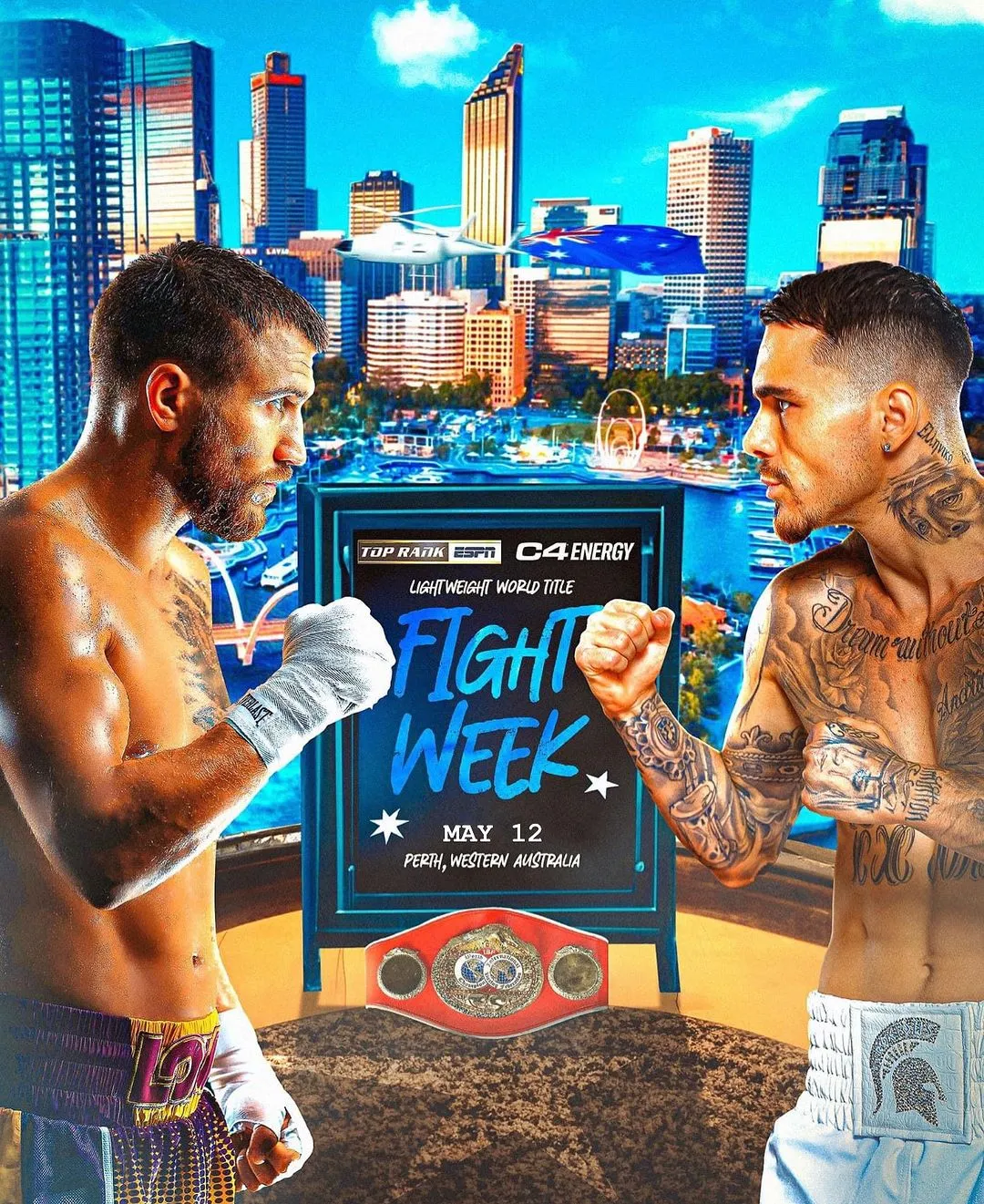 У неділю, 12 травня в австралійському місті Перт відбудеться бій між Василем Ломаченком та Джорджем Камбососом. Вихід боксерів на ринг очікується приблизно о 7:00 за київським часом.