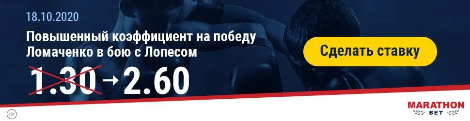 Подвійні коефіцієнти діють лише на ставки розміром від 50 до 200 гривень на перемогу Ломаченка. Детальніше – на сайті Marathonbet.
