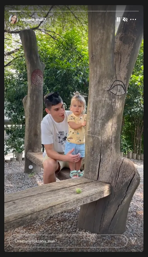 Руслан вже проводить час з сім'єю. Відео Маліновського, який гуляє в парку з донькою, виклала його дружина – Роксана.