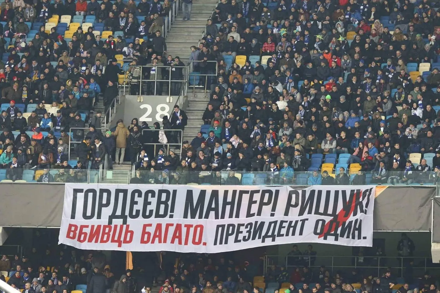 Позов поданий за появу на НСК "Олімпійський" банера зі згадуванням імені Мангера під час матчу Ліги Європи "Динамо" – "Челсі".