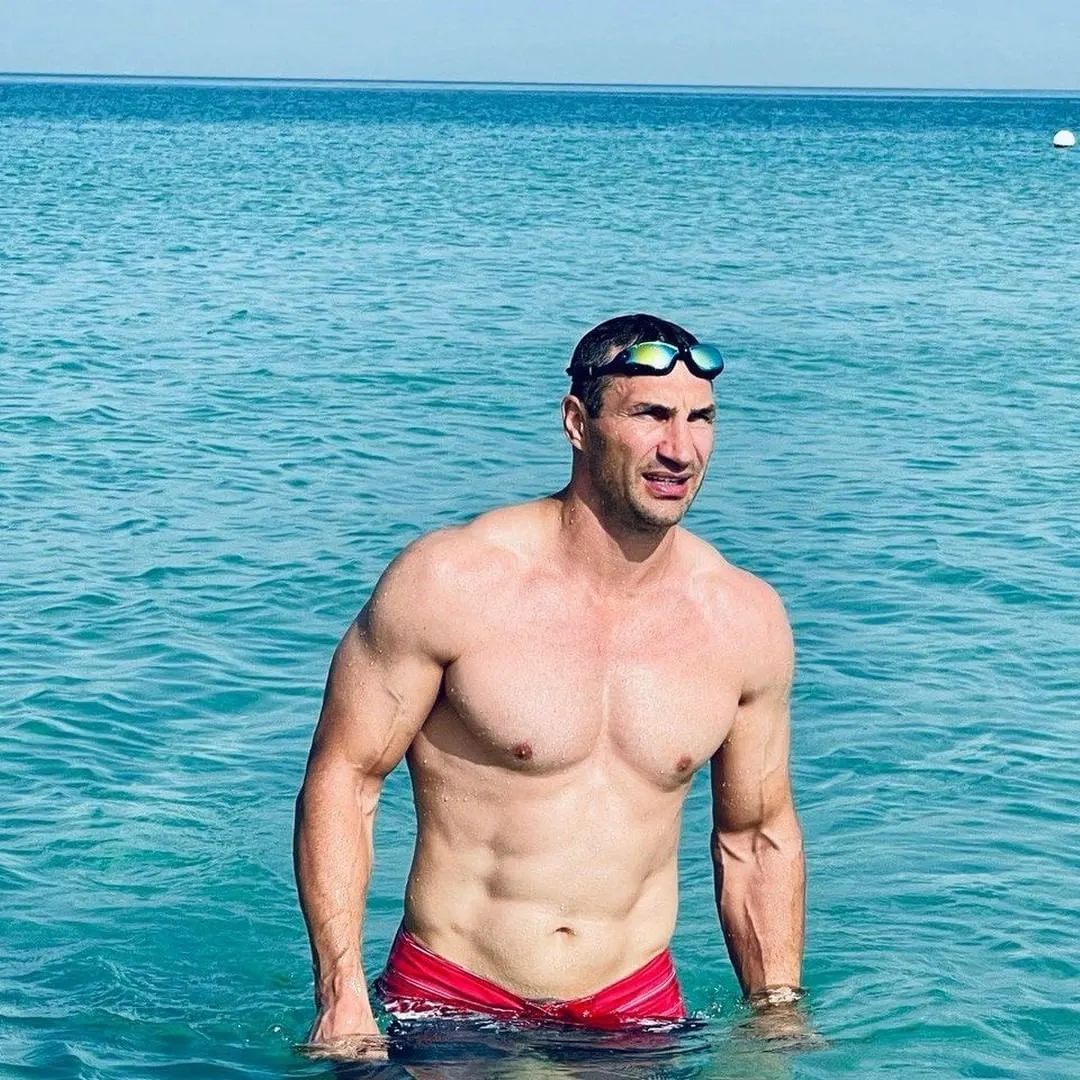 Кличко-молодший похизувався відмінною фізичною формою, стоячи по пояс у воді. Українець у такій розкішній формі зможе дати фору будь-якому боксеру. І це у його 45 років.