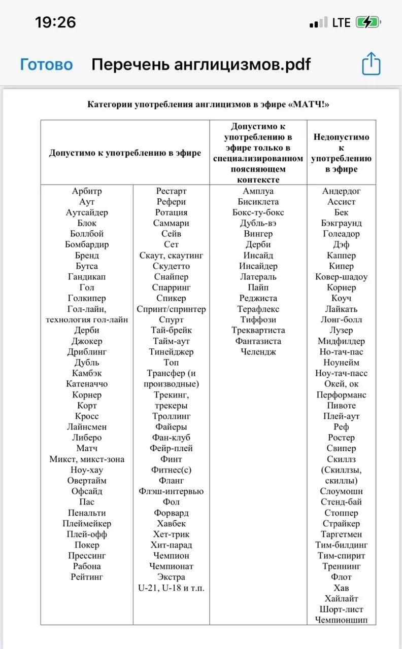 Також є перелік слів, які можна коментаторам вживати в ефірі.