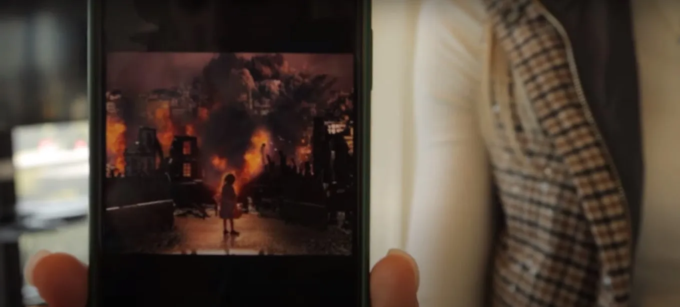 Малюнок з палаючим Маріуполем, який став основою татуювання Шапаренка / скріншот
