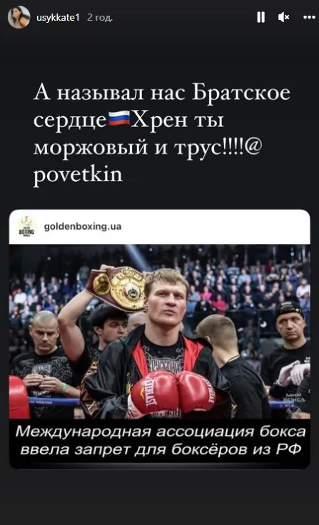 "А називав нас Братським серцем. Хрін ти моржовий і боягуз", – написала Усик.