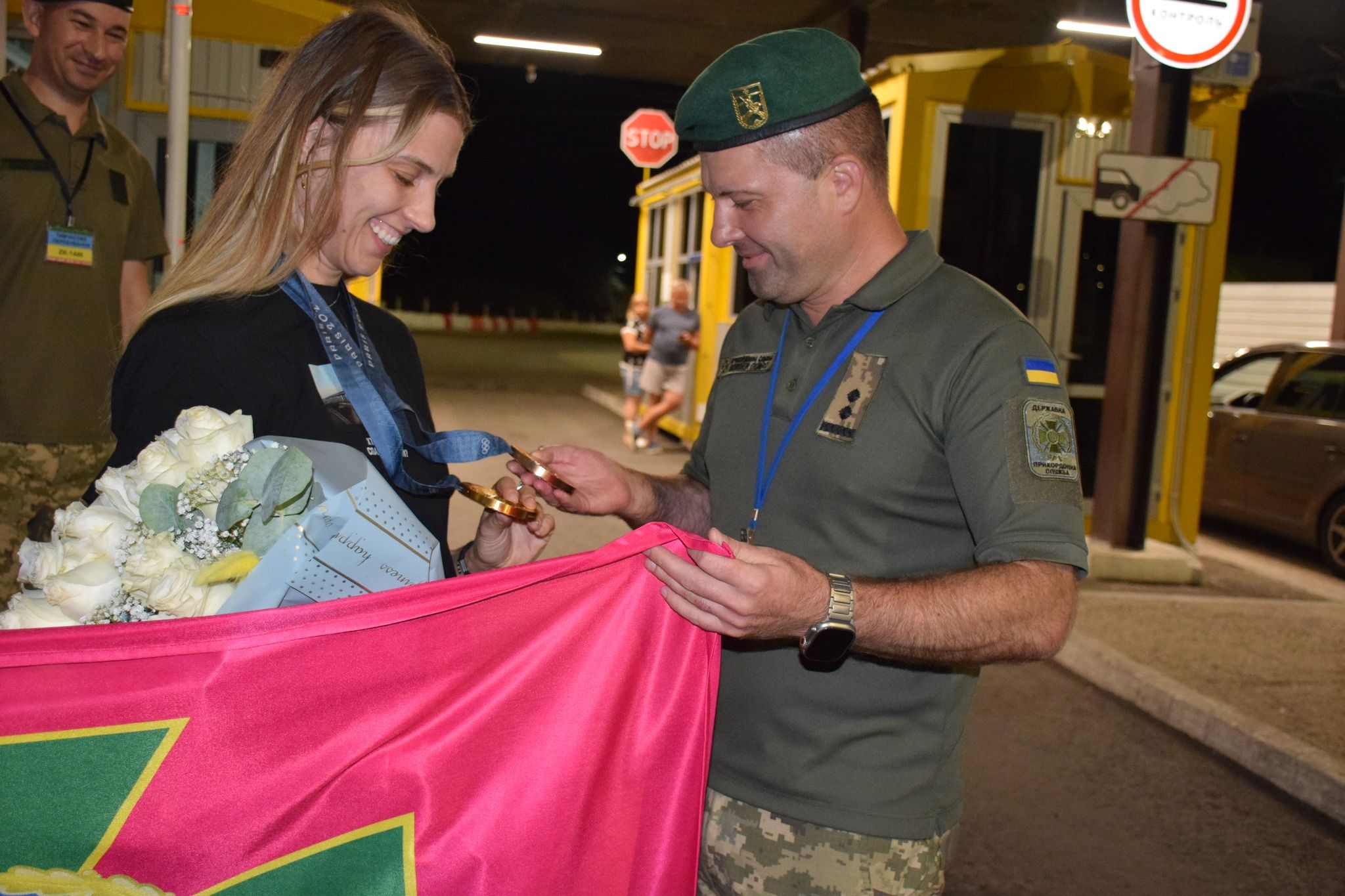 "Привітали володарку шести олімпійських медалей і чотириразову чемпіонку світу в цьому виді спорту з перемогою та подякували їй за наполегливість, стійкість і справжню, українську жагу перемагати та рухатися уперед", – зазначили прикордонники.