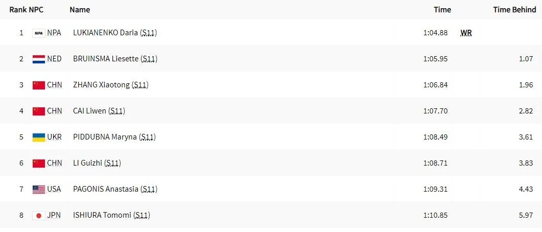 Результат запливу / скриншот з офіційного сайту Паралімпіади