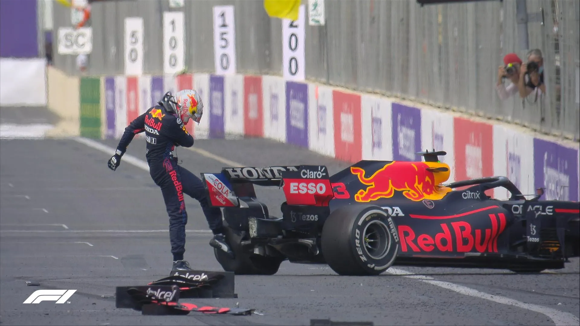 Саме Ферстаппен їхав першим. І очікувалося, що він здобуде перемогу, відірвавшись від Хемілтона в турнірній таблиці. та за 15 кіл до фінішу на трасі сталася перша значна аварія – на прямій лопнуло ліве заднє колесо в Ленса Стролла. Його болід кинуло на відбійник. Тому на трасу виїхав автомобіль безпеки.
