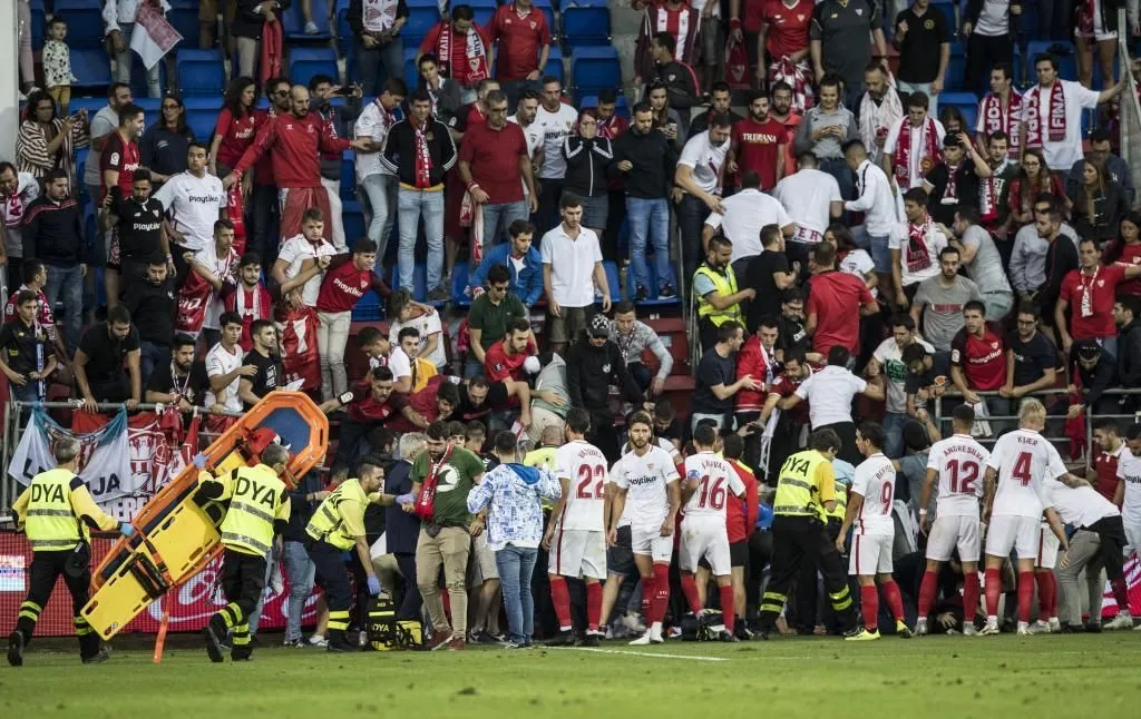 Інцидент трапився у другому таймі, коли на 59-ій хвилині Евер Банега забив другий гол "Севільї" з пенальті. Гравець побіг до гостьового сектора, щоб відсвяткувати гол. У цей час фанати "Севільї" навалилися на огорожу, і вона не витримала тиску. Вболівальники вивалилися на поле, пише Marca/