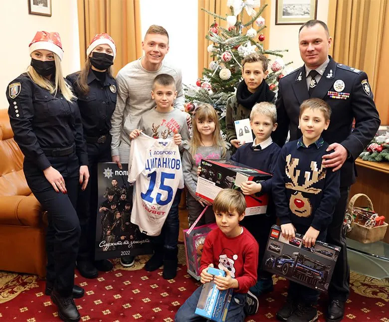 Правоохоронці запросили школяра до столичного главку, де несподіванкою для нього стала зустріч з Віктором Циганковим. Футболіст привітав маленького фаната з Новим роком та подарував футболку зі своїм автографом.