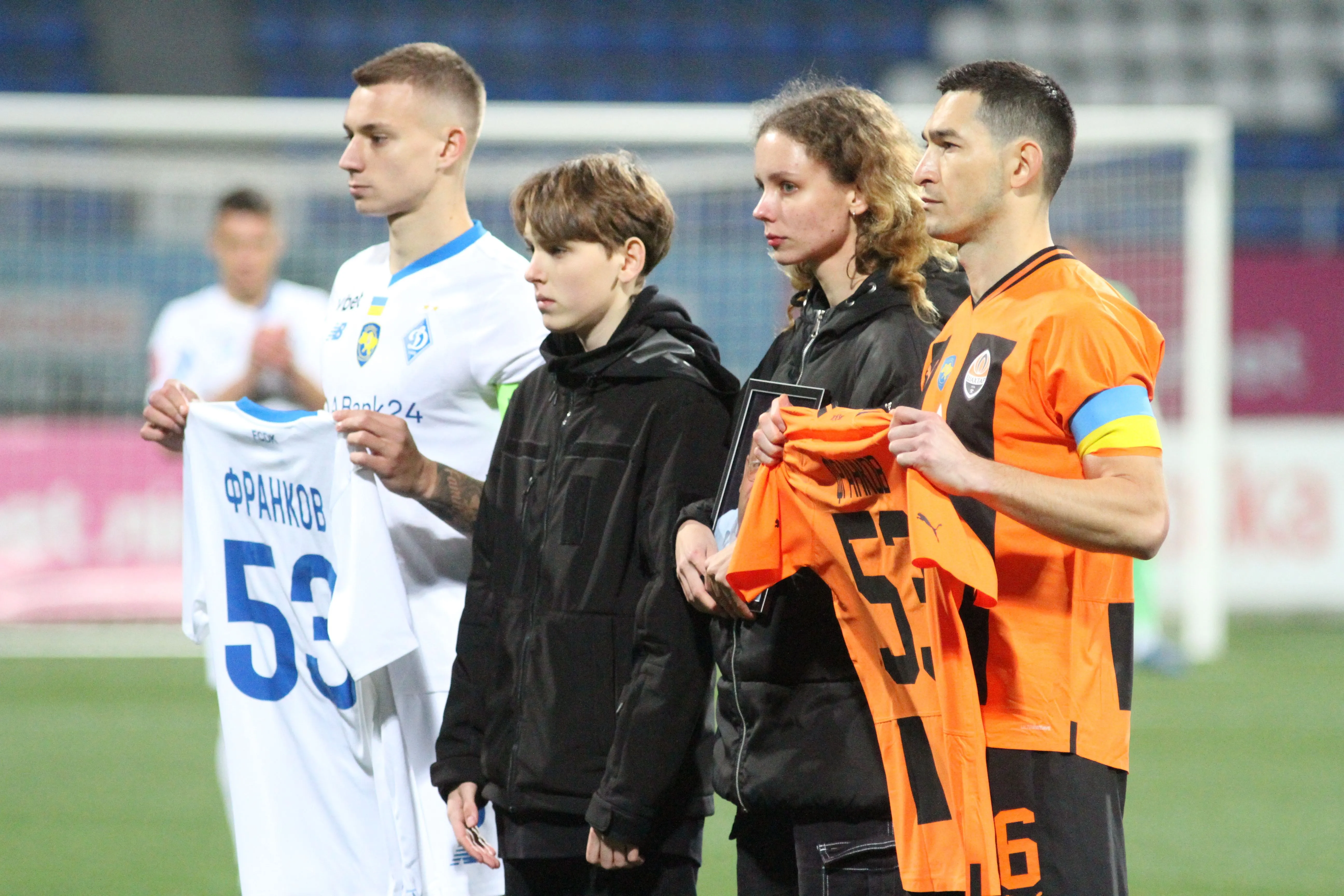 Перед початком матчу Динамо – Шахтар хвилиною мовчання вшанували загиблих захисників України. Після цього капітани команд Володимир Бражко та Тарас Степаненко взяли футболки з прізвищем Франков та номером 53. Так українські гранди віддали шану Артему Франкову.