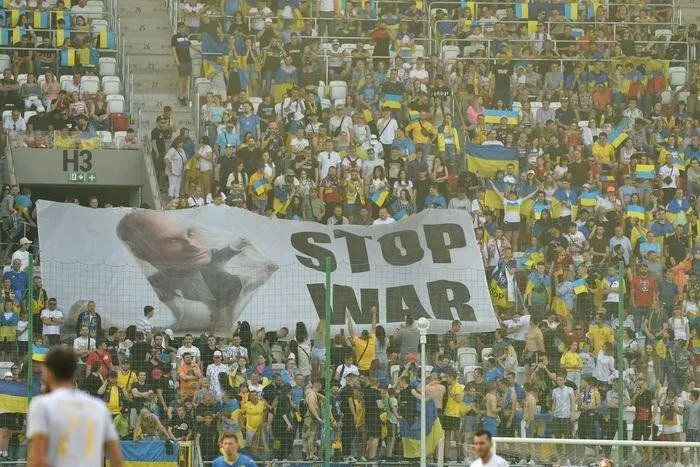 Під час перерви українські вболівальники продемонстрували банер з зображення російського президента Володимира Путіна.