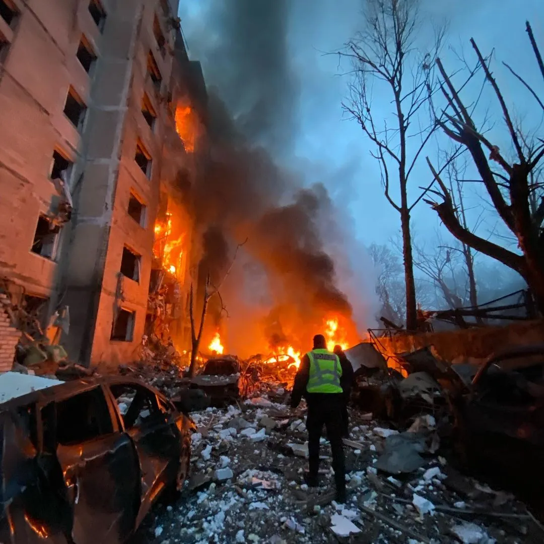 Внаслідок обстрілу 2 січня уламки російської ракети впали на багатоповерхівку в Солом'янському районі Києва. У житловому будинку спалахнула сильна пожежа, внаслідок якої двоє людей загинуло, а постраждало понад 50 осіб.