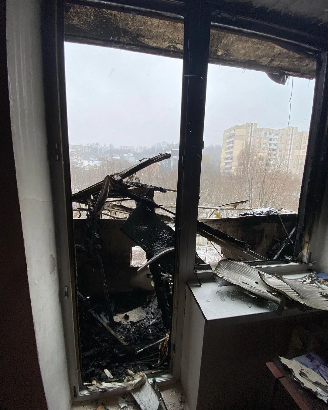 Квартира відносно ціла. Повиносило двері та вікна, затопило після того, як гасили пожежу над нами. Однак у порівнянні з квартирами, які розташовані поряд, все не так страшно. Але будинок загалом у дуже поганому стані. За моїми відчуттями, і по тому, що кажуть сусіди, його зноситимуть. Але це поки що на рівні пліток. Будемо чекати на експертизу,